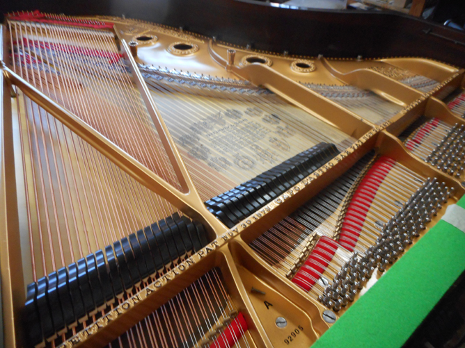 Pinblock replacement is generally necessary in about 50% of older grands, as the laminated ply of the original blocks has failed, making the piano untunable (particularly Knabe’s). Steinway uprights never have bad pinblocks, but they do often have cracked bass bridges which need repair.